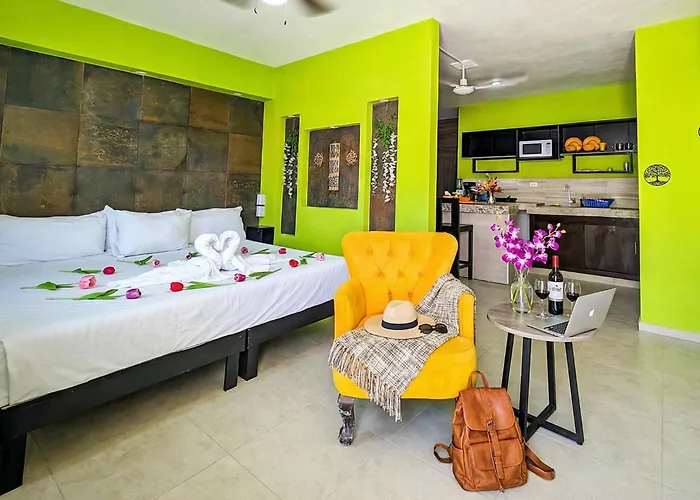 Located only 1.2 km from Punta Esmeralda Beach, the 45 m² Cozy Remote Working Suite Memory Foam King Bed 500M Beach Fast Wifi Ac 4B Playa del Carmen provides access to a number of tourist sites nearby. The apartment features a terrace which opens out onto the courtyard.
